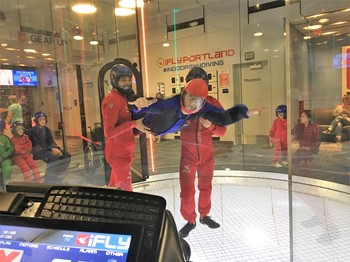 The program is specifically designed to meet the needs of flyers with disabilities and was the brainchild of two iFLY Portland employees, Megan Zielinski and Jamee Homuth. Jamee has a child with special needs herself and has experienced firsthand the difficulty in finding activities that are inclusive of people with disabilities. Megan had always dreamed of using the tunnel for occupational and physical therapy purposes at some point in her future. Chatting together during work one day, they decided an event like this was not only a shared passion, but also a necessity for their community. With help from their team, they had the entire event planned and ready to go in less than a month. It sold out in less than 24 hours!